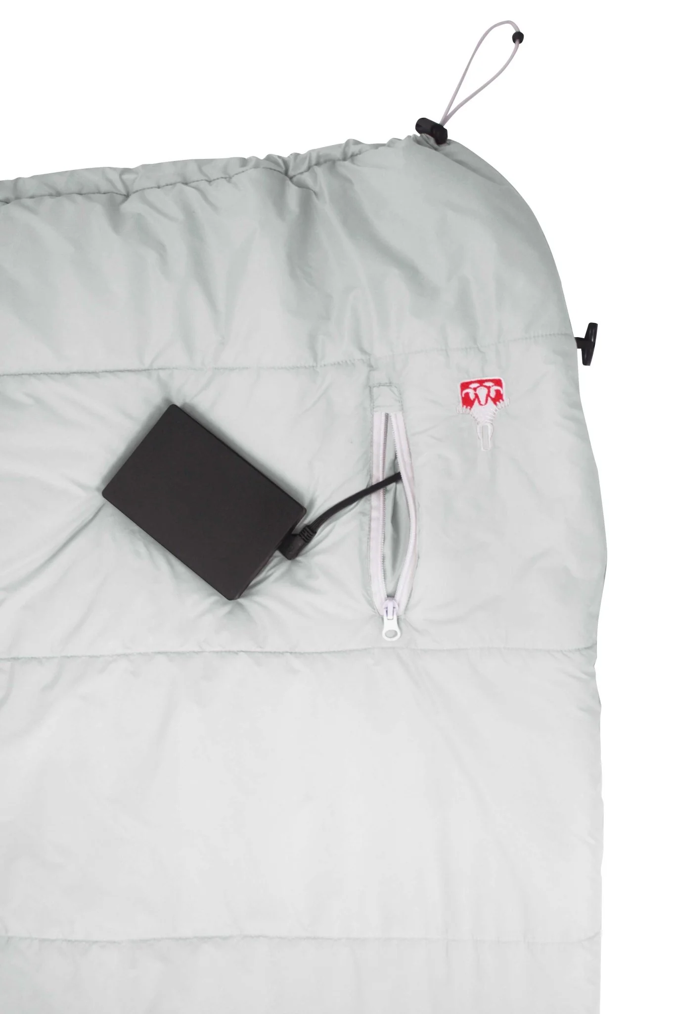 - Kordelzug mit Stopper: Um den Schlafsack unter den Schultern anzupassen und am oberen Ende das Entweichen der Wärme zu verhindern.
