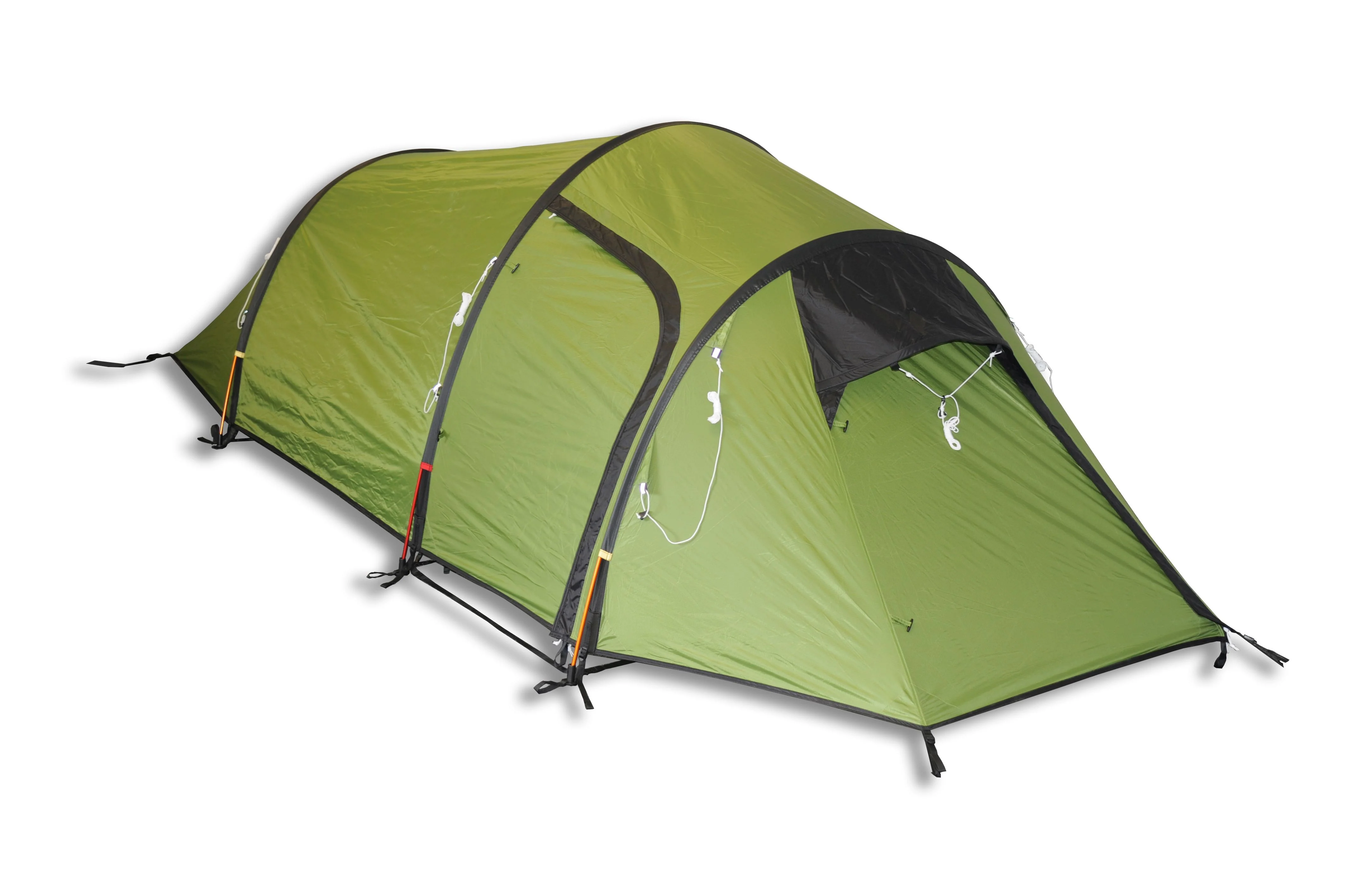 Vorteil: Schutz des Innenzeltes vor Schnee, Sand und heftigem Regen - Doppelt gesetzte Abspannungen an den Gestängebögen.